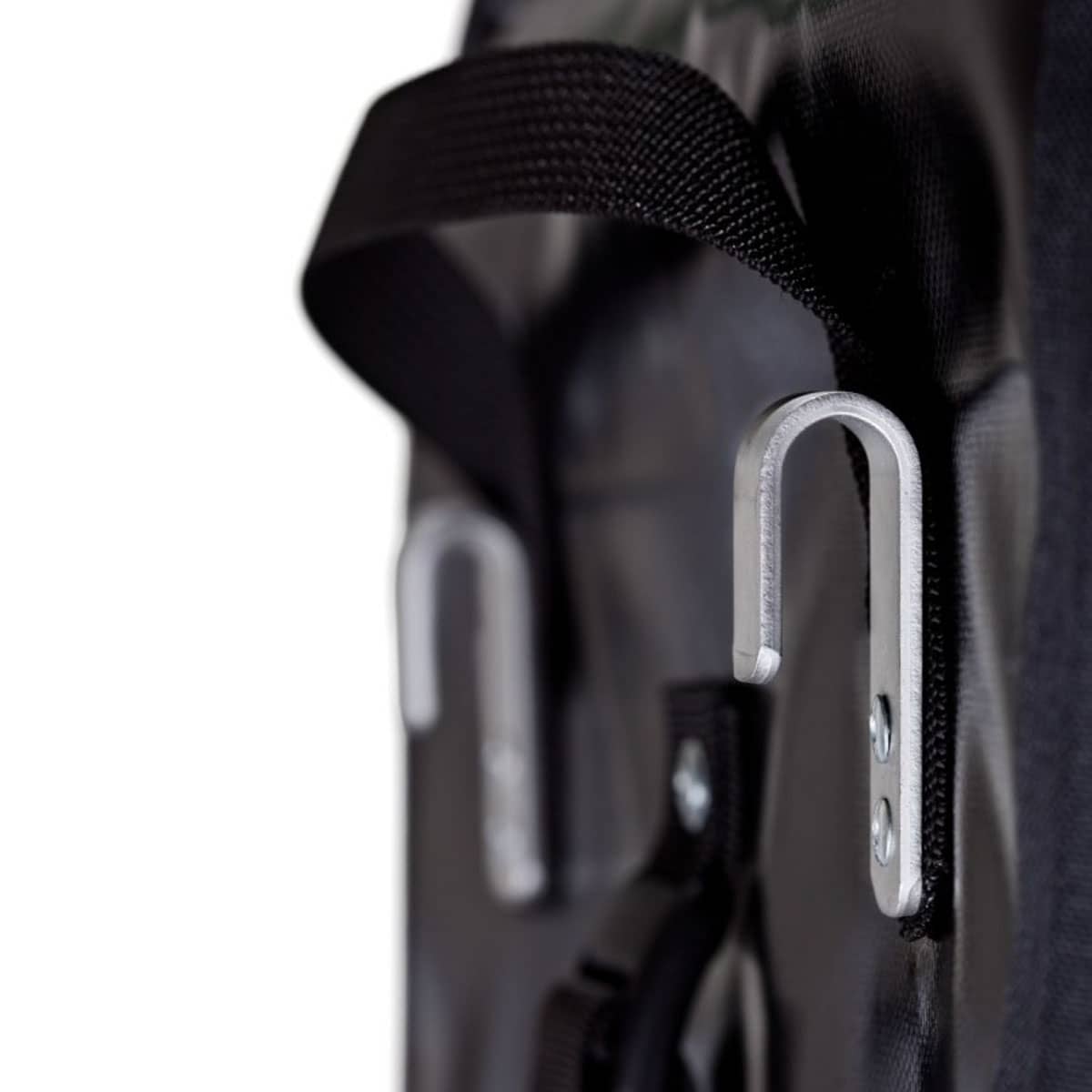 Wykonane z pancernej stali o grubości 3 mm, zabezpieczone przed korozją w procesie cynkowania. Są trwale przymocowane do płyty usztywniającej solidnymi nitami. Jeden hak może z powodzeniem przenieść siły znacznie większe, niż te generowane przez sakwę w trudnym terenie. Co najważniejsze: w przeciwieństwie do plastiku, podczas wypadku stal nie pęka! Daje się wyprostować (choćby kamieniem), więc nigdy nie zostaniesz z zepsutym sprzętem w górach czy na środku stepu.